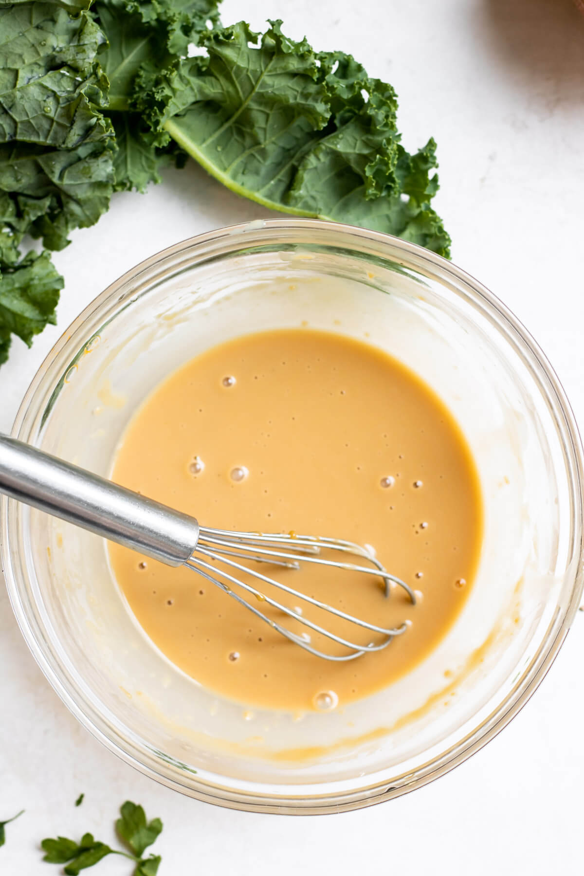 - Prepare the dressing by whisking all ingredients together in a small bowl until well combined.