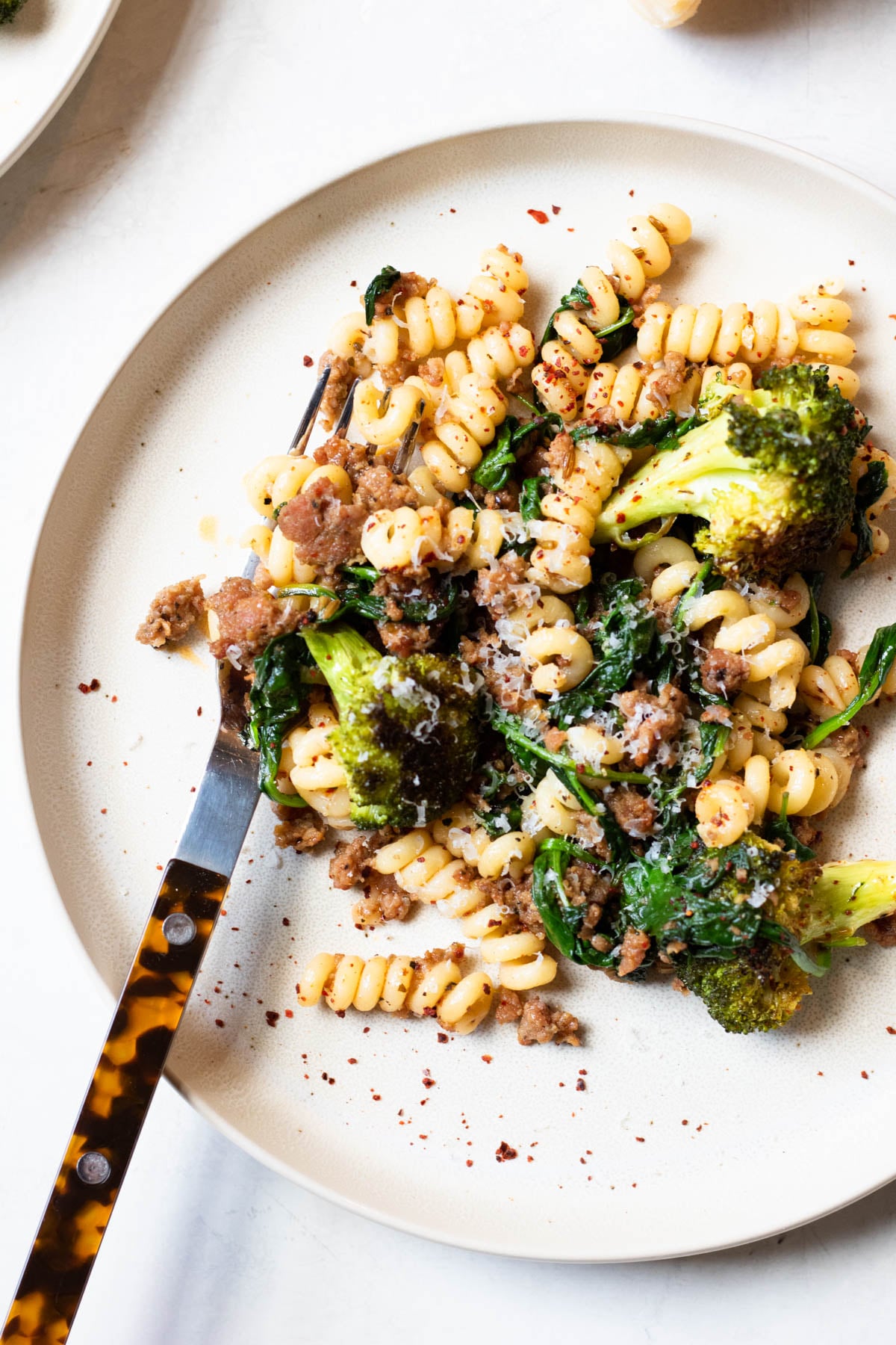 When I am making pasta, I don't tell Jordan. I just appear with a dish. Like a little pasta fairy. On this spicy sausage and broccoli pasta occasion, I appeared with a dish and then he went back for seconds and then thirds and then fourths.